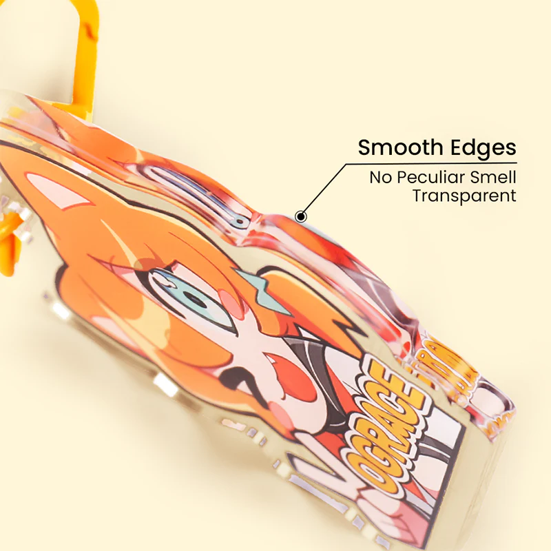 Vograce custom clear acrylic keychains are durable, odorless, water resistant and light in weight. The acrylic charms are bright in color and pattern and will not fall off, the edges are smooth and translucent through. Can choose a variety of additional processes such as epoxy, holographic etc.